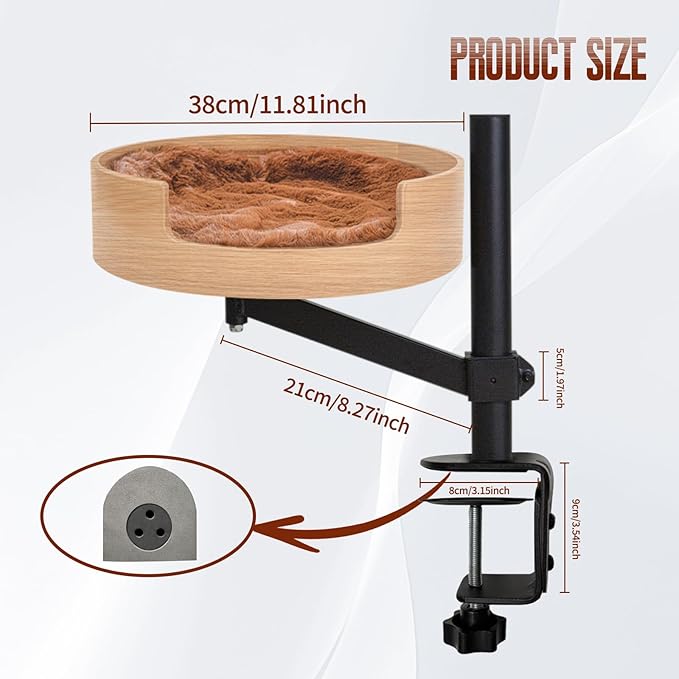 Cat Bed Desk with Pet Mat, Cat Hammock for Desk, Cat Bed Desk with Wooden Bowl, 360° Rotation and Adjustable Height, Brown