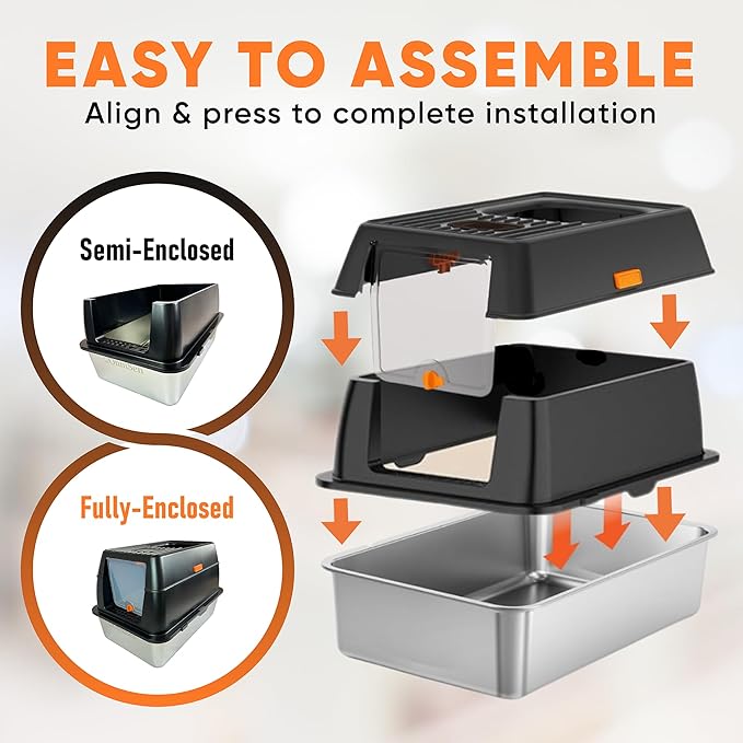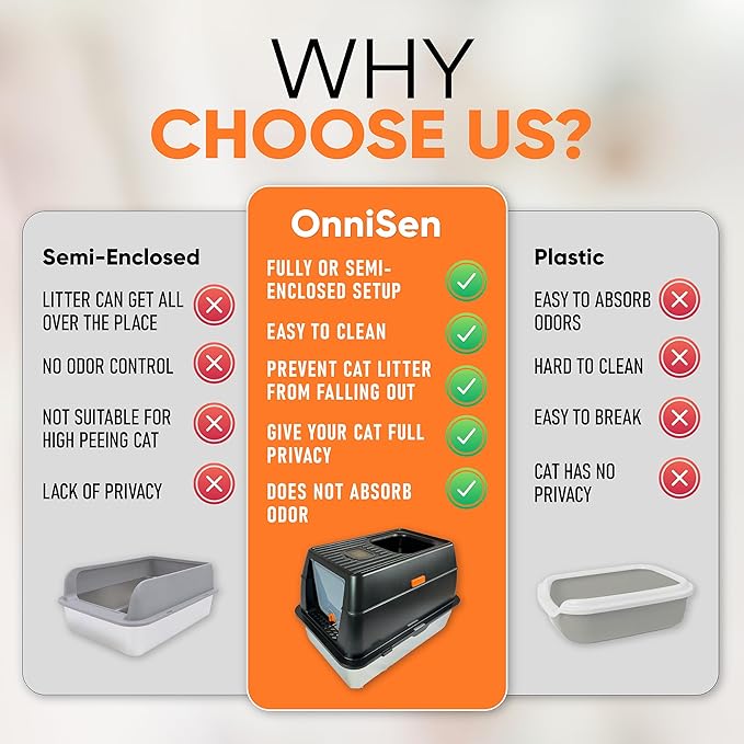 - Dual Entry & Semi/Full Enclosure: Cat litter box large Versatile design with dual entry options and semi-enclosed or fully enclosed setup. This xl cat litter box ensures privacy while reducing litter tracking, making it ideal for fat cats and kittens alike.