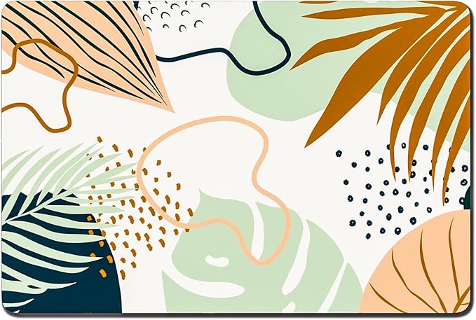 Rnivvi Dog Food Mat, 12" x 19" Boho Absorbent Dog Cat Bowl Mat for Food and Water, 3MM Anti-Slip Rubber Pet Feeding Rug Protect Floors, Puppy Placemat for Feeding & Watering Supplies, Tropical Leaves