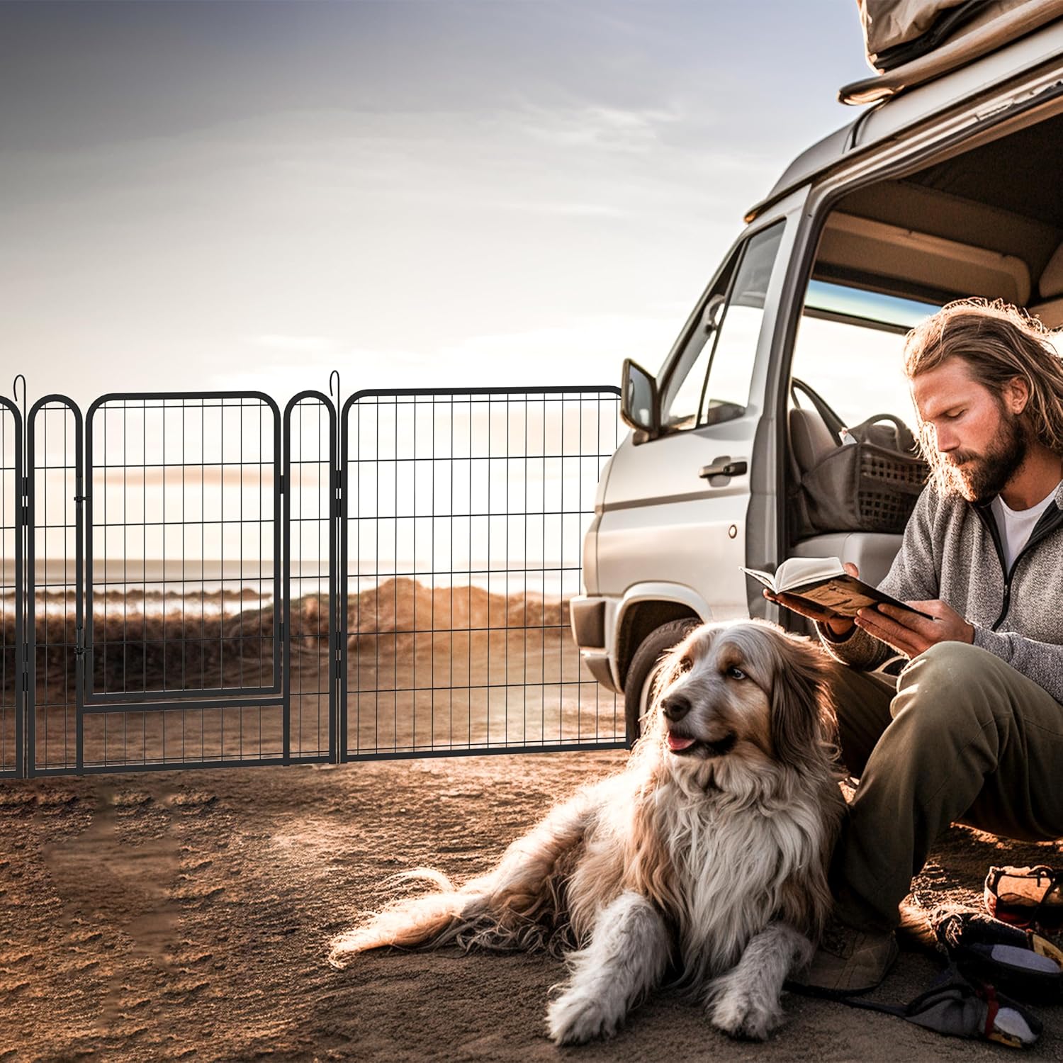 - 🐶𝗦𝗽𝗮𝗰𝗶𝗼𝘂𝘀 𝗣𝗹𝗮𝘆 𝗭𝗼𝗻𝗲: This dog exercise pen offers a vast, semi-open realm where your beloved pets can roam freely and safely. As they frolic in their expansive kingdom, you can enjoy your downtime—whether it's whipping up a meal, diving into a good book, or soaking in the sun. Let's embrace the joys of life with our furry friends
