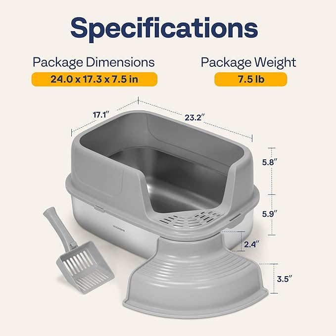 VIVOHOME XL Stainless Steel Cat Litter Box with Cover and Steps, 23'' x 17'' x 12'' Large Metal Litter Box for Cats with Scoop, Easy to Clean, Non-Slip, Ideal for Big or Multiple Cats, Light Gray
