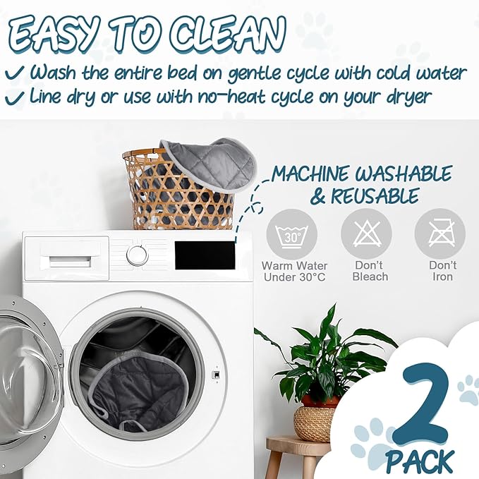 2 Pcs Cat Heating Pad Round 16 Inch Self Heating Cat Mat Washable Heated Bed Anti Slip Warming Pad Pet Bed Mat for Kennel Dog Crate Indoor Outdoor(Gray,16 Inch)