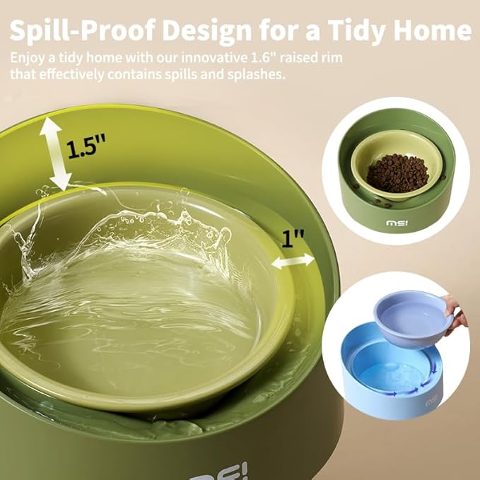 - [Spill-Proof Design for a Tidy Home] - Enjoy a tidy home with our innovative 1.6" raised rim that effectively contains spills and splashes. Ideal for enthusiastic eaters, this feature ensures your floors stay clean, allowing you to relax while your pet indulges in their meals.