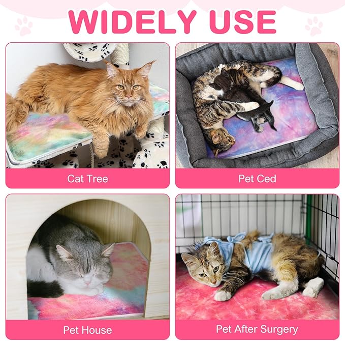 - Package Includes: the package includes 4 pack self warming cat crate mat with tie dye pattern design, each size is measured about 16 x 20 inch/ 40 x 50 cm, ideal for cats, kittens, puppies, dogs, newborn pets, pregnant pets, pets healing from an injury, aging and arthritic pets, even small animals like guinea pig, hamster, rabbit, hedgehog, ferret, chinchilla, marmot