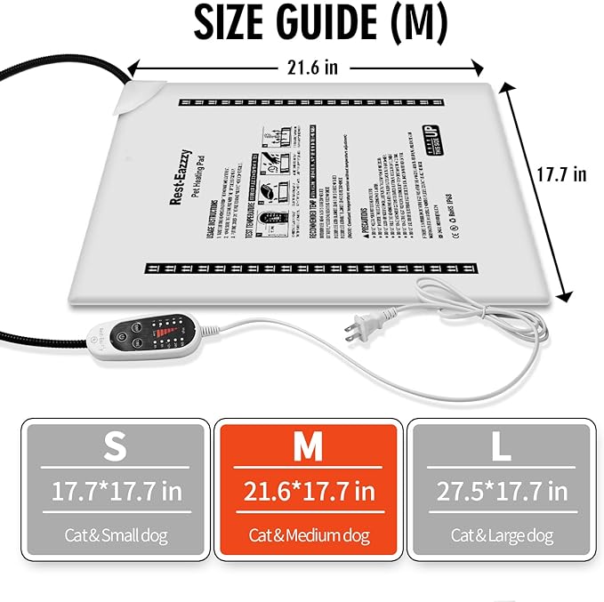 Rest-Eazzzy Heated Cat Bed with Removable Cover, 5 Level Timer & Temperature, Indoor Warming Mat for Cats & Dogs (Heat Pad, Pure-Blue, M)