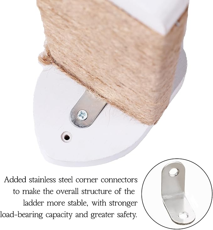3-in-1 Cat Wall Steps with Hemp Rope, Solid Wood Cat Ladder for Climbing and Playing (Large-White)