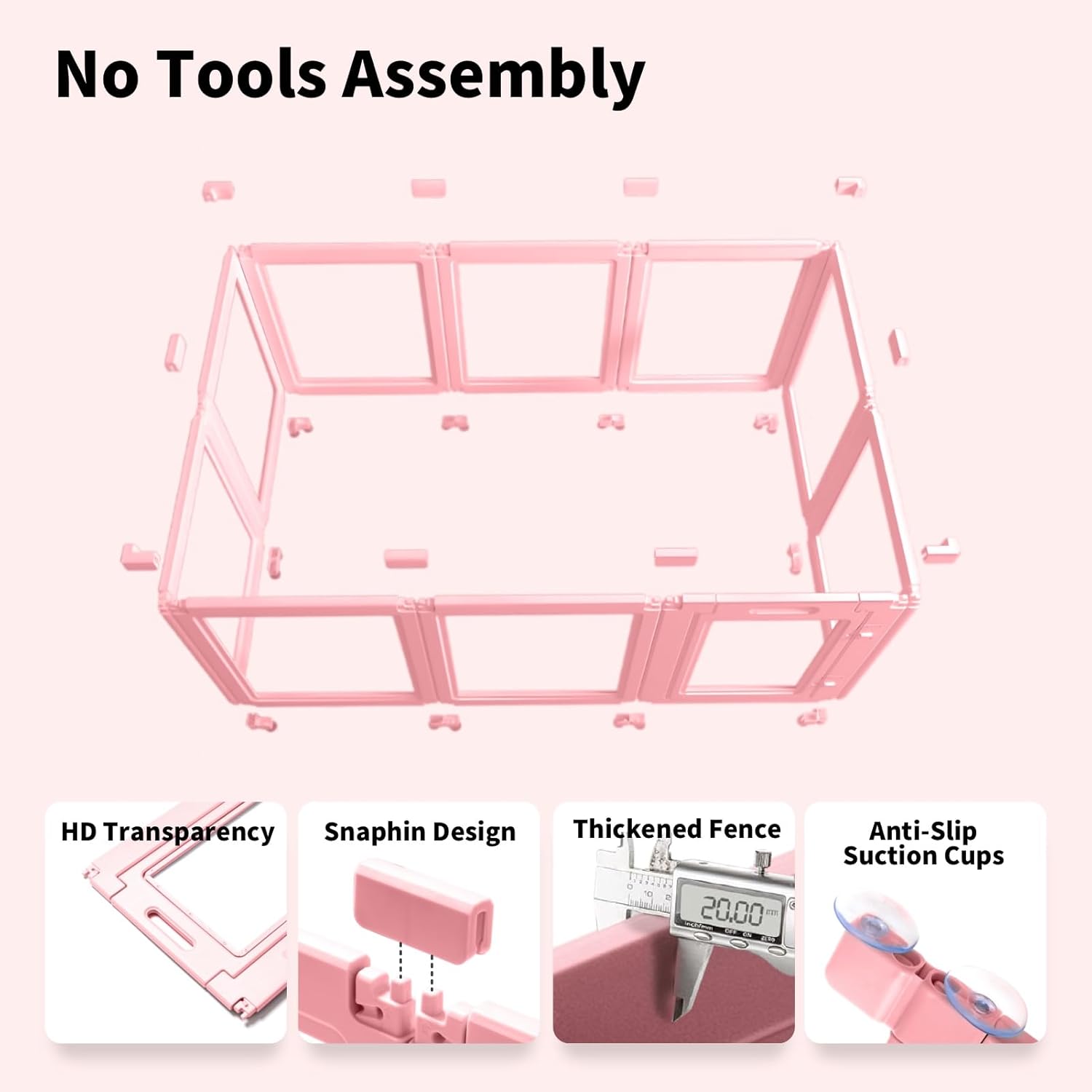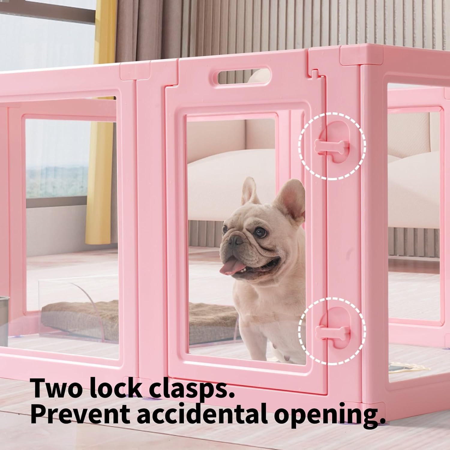 DIY Clear Acrylic Dog Playpen House,Quick Easy Assembly and Disassembly,Strong Floor Suction,Indoor and Outdoor Use,Easy Cleansing Puppy Fence (Sakura Pink, 23.6" H, 12PCS)
