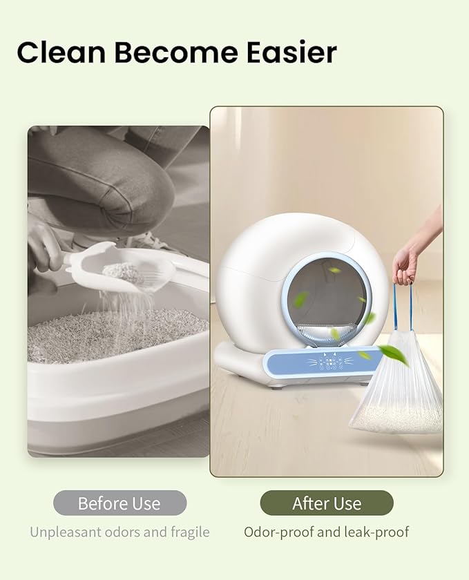 - 【Size Noted!】Our litter box liners are expertly designed to perfectly fit the all-in-one designed automatic cat litter box, ensuring a seamless and secure fit. Size: 18 x 18 inches (45 x 45 cm). Please check if these cat litter liners are suitable for your litter box before purchasing to ensure compatibility.