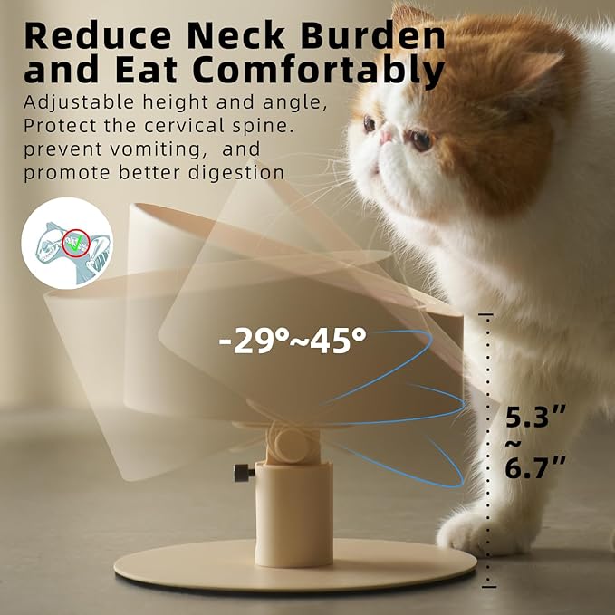 MS!MAKE SURE Adjustable Raised Cat Bowls, Ceramic Elevated Cat Bowls, Pet Bowl with Anti - Slip Rubber Pad, Leak - Proof, Lead & Cadmium Free, Whisker - Friendly, for All Life Stages of Age Pink