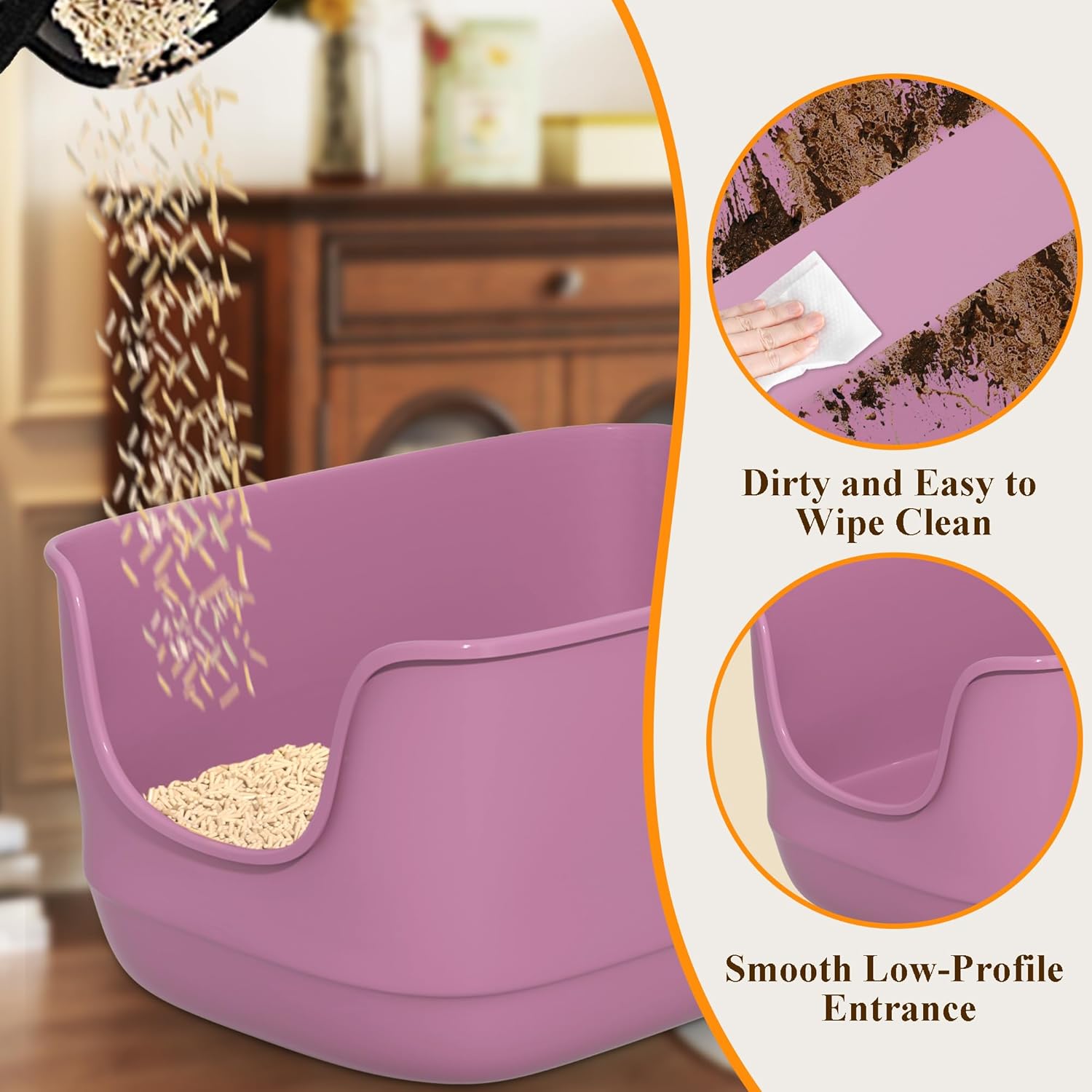 - Open Top: The open top litter box has an open view so you can see your cat's habits and health at a glance, makes it easier to clean and change litter, and the low entrance makes it easier for older cats and kittens to get in and out.