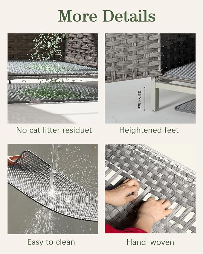 - Quality Build: The hidden litter box is hand-woven from odorless rattan material, hidden cat box is safe for cats to touch. The woven rattan is both waterproof and easier to clean, hidden litter box furniture making your cat and you more comfortable