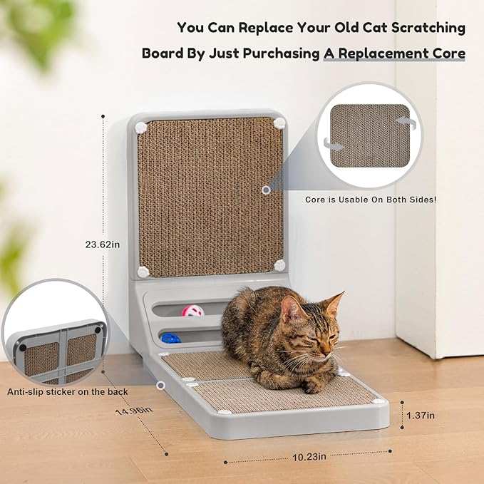 - Perfect For All Cats:Goosheep Giant Cat Scratching Board is designed for large cats and kittens,It also comes with a double track ball design equipped with 4 balls, which can increase the cat's playtime and excitement; put it down against the wall and turn it into a cat's nest in seconds, suitable for all sizes of cats, can be scratched or slept on, and a variety of ways to play are waiting for you to be unlocked.