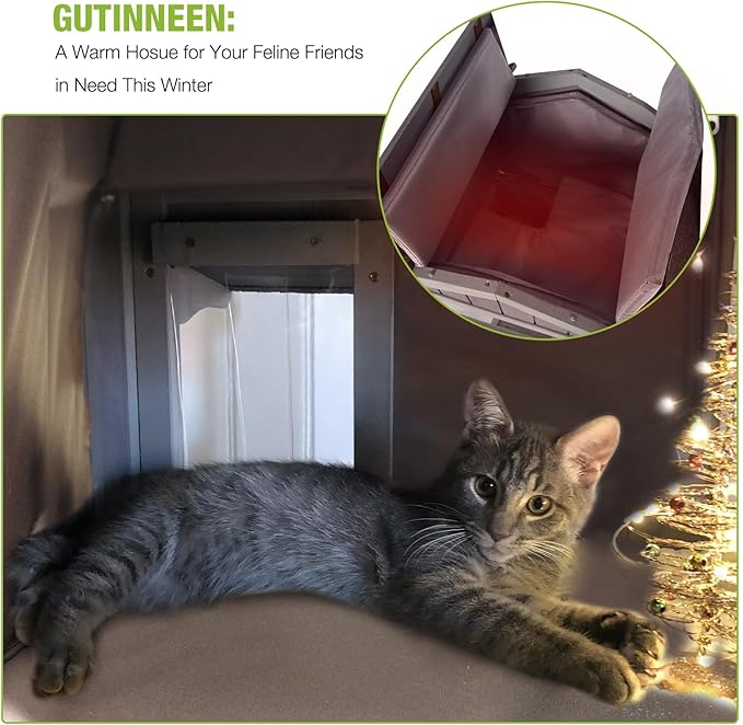 GUTINNEEN Outdoor Cat House Insulated Weathproof Two Story Feral Cat Shelter for Winter with Escape Door