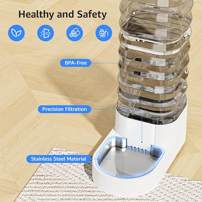 - 【Friendly - Upgraded Design】The automatic dog waterer is designed with a stable, non-slip base that prevents pets from knocking them over. The depth of the water bowl is optimized to suit the pet's drinking behavior, preventing splashing and enhancing the overall drinking experience.