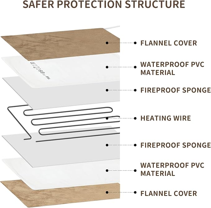 - SAFE AND RELIABLE CONSTRUCTION: MET certified for your peace of mind. The electric heating pad for cats features a 7-layer protective construction with a thickened soft PVC shell, built-in fireproof cotton material and fully sealed technology. The heating pad has a built-in temperature sensor to prevent overheating. It is waterproof, leak-proof and fireproof to protect your pet from burns.