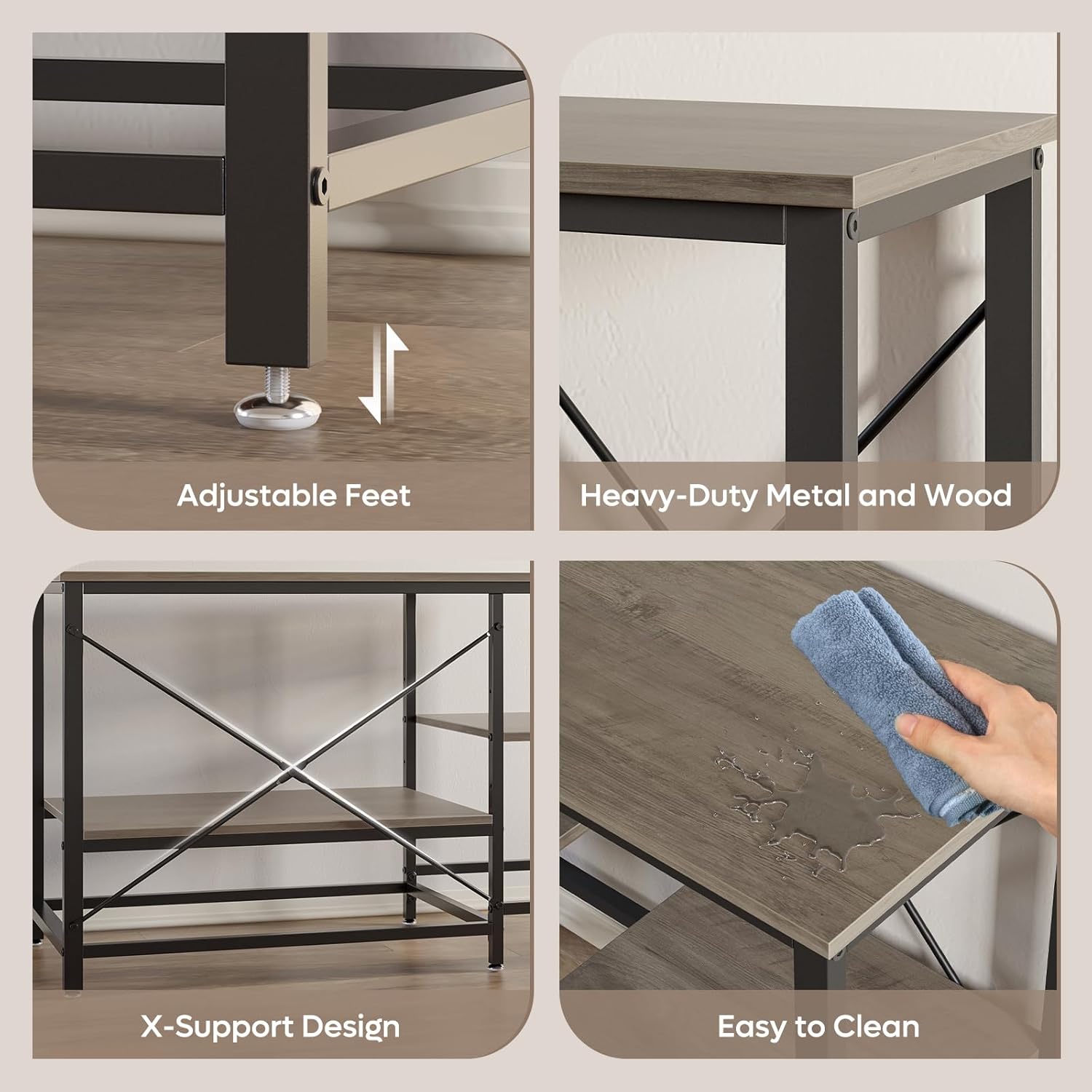 - Heavy-Duty & Stable Construction: Built with sturdy metal and P2-grade engineered wood, supported by 6-legs and X-shape reinforcement, ensuring stability and a weight capacity of up to 700 pounds