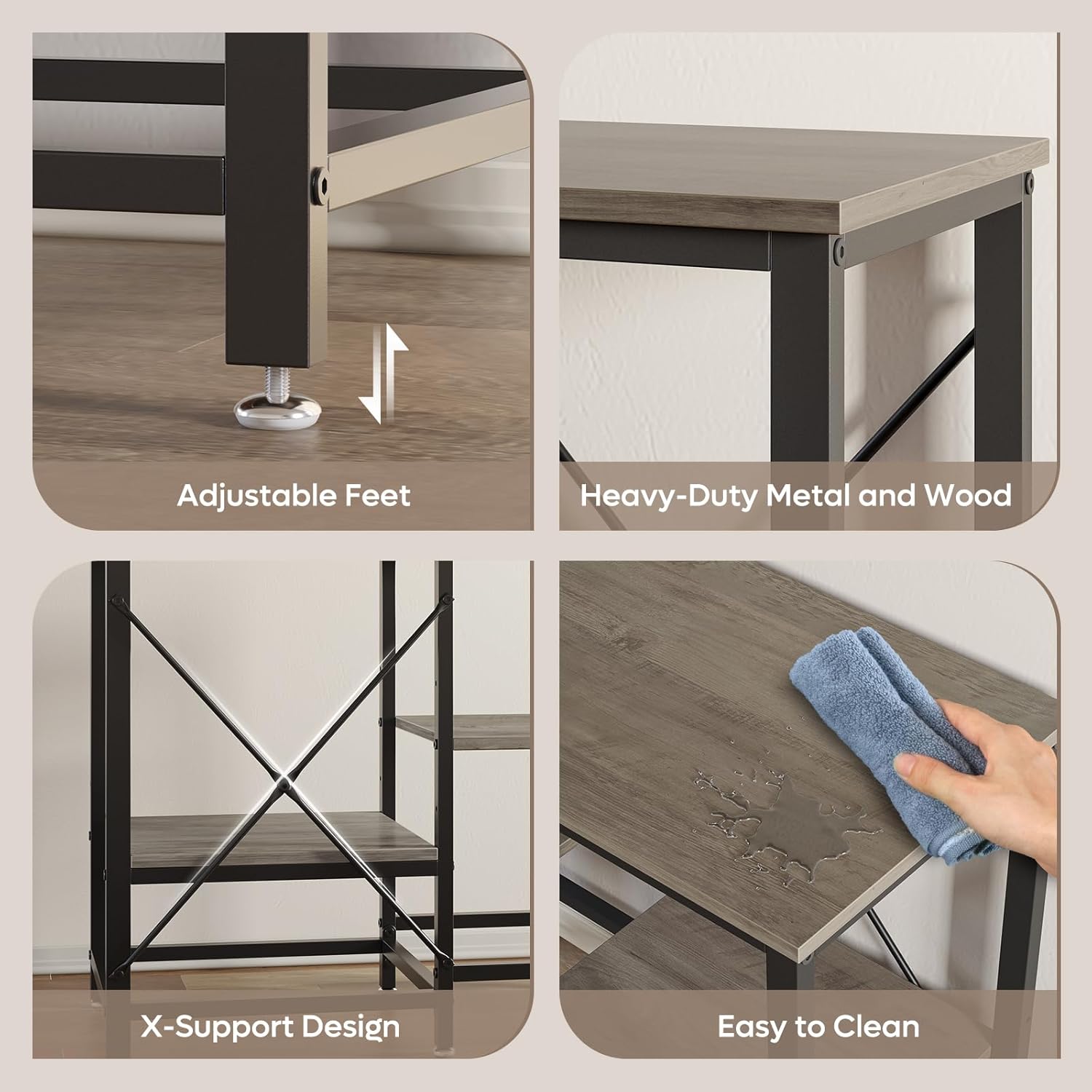 - Heavy-Duty & Stable Construction: Built with sturdy metal and P2-grade engineered wood, supported by 6-legs and X-shape reinforcement, ensuring stability and a weight capacity of up to 660 pounds