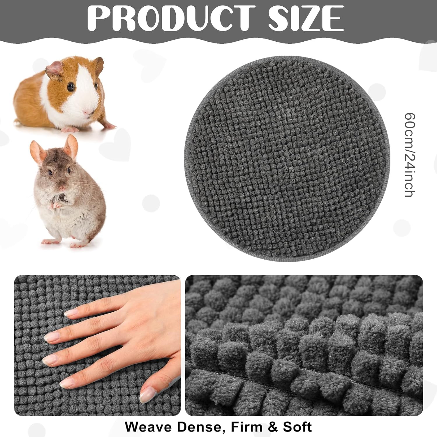 - Proper Size for Small Pets: our guinea pig cage liners come with a size of about diameter 12 inches/ 30 cm, suitable for small animals, such as guinea pigs, rabbits, chinchillas, squirrels, hamsters, rats, puppies, hedgehog, ferrets, cats and other similar size small pets, and can also serve as dog bowl pads or cat litter pads to keep areas clean and tidy