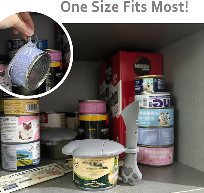 - 【Package】You will get 3 pieces of cute paw shape pet food can covers in grey and 1 piece canned spoons in grey in this package; The size of the pet can spoon is 5.1 inch*1.6 inch.