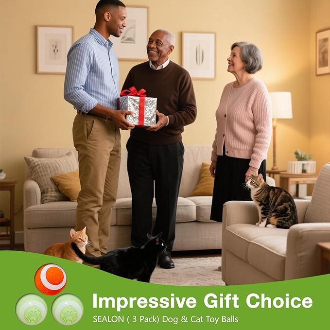 SEALON Electric Interactive Dog & Cat Toy Ball(3 Pack) Indoor Cat Play Ball, Suitable for Cats Over 6 Months for Exercise, Weight Loss, and Fun