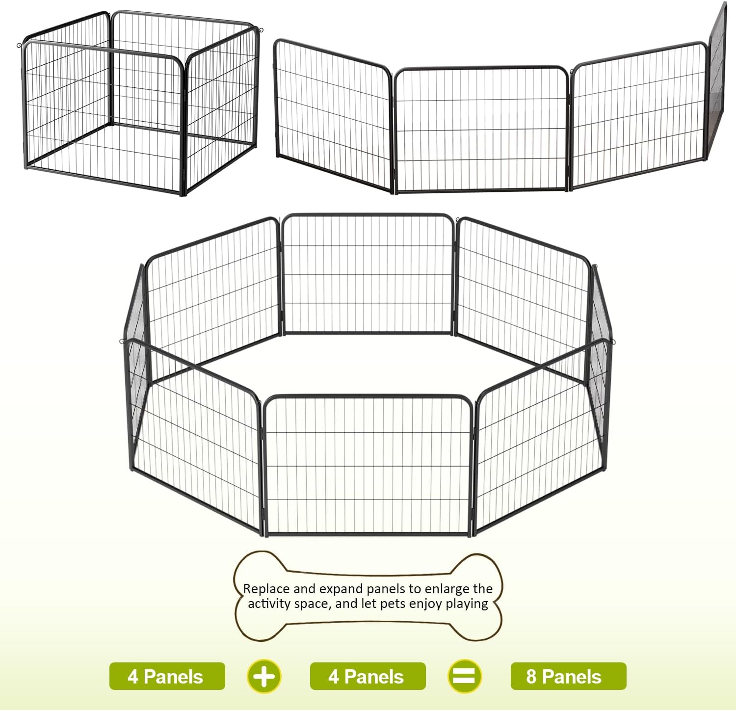BestPet | Dog Playpen Extender | 24 Inch, 4 Panels | Heavy Duty Metal Pet Exercise Pen | Indoor Outdoor Fence Panels | Rust-Resistant, Removable, Tool-Free Setup | Anti-Skid, Expandable Design