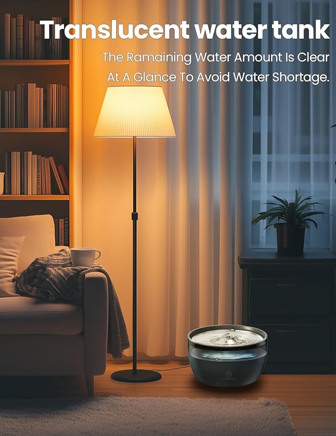 - Ultra-Silent Operation: This cat drinking fountain features an ultra-quiet pump operating below 30dB, creating a peaceful environment and allowing both you and your pet to enjoy a restful indoor night’s sleep