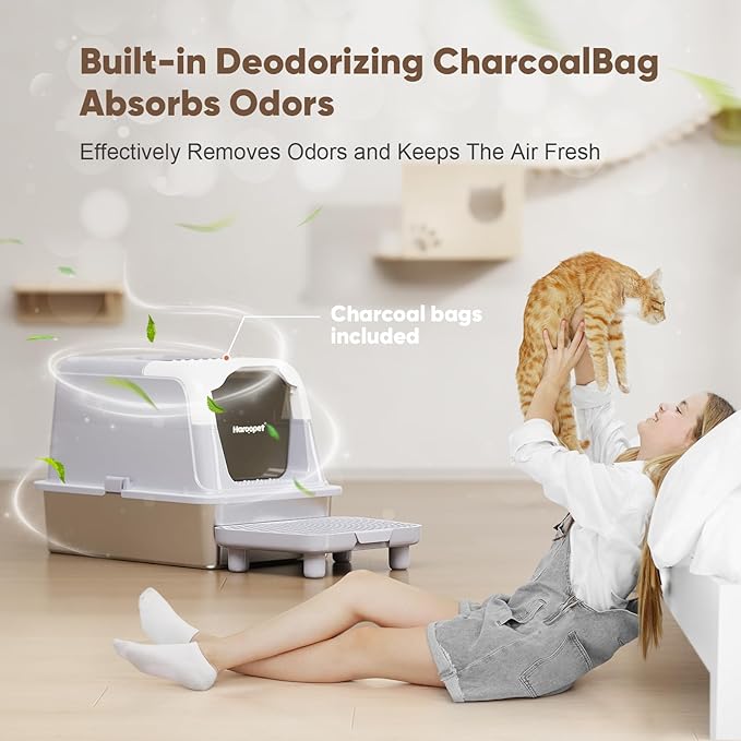 - 🐈Odor-Free & Durable: Haroopet Stainless Steel Litter Box is made of premium ABS material and high-quality stainless steel. Unlike plastic litter boxes, the stainless steel cat litter box will not absorb any odors. It also features a deodorizing compartment for placing bamboo charcoal bags to quickly absorb odors. The sturdy stainless steel tray will not rust or scratch like plastic trays and is durable.