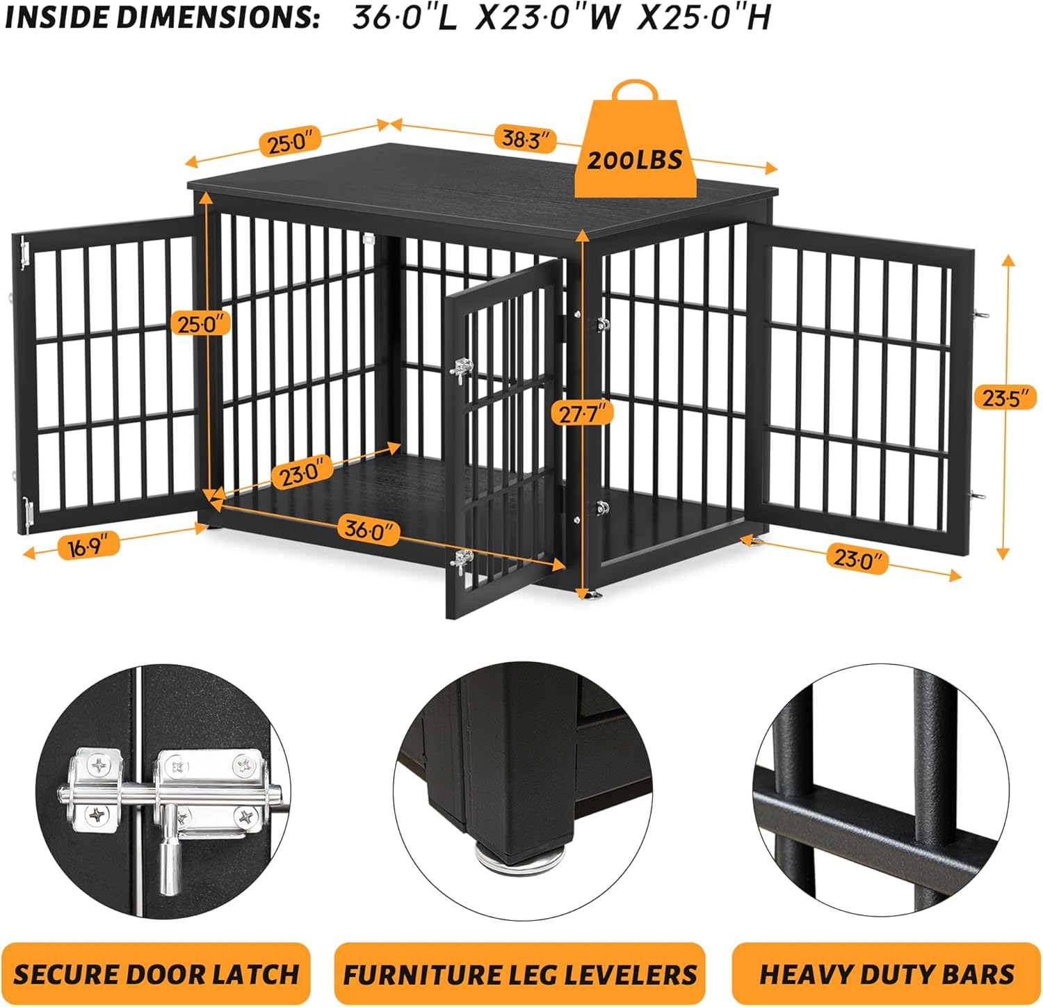 38 Inch Heavy Duty Dog Crate Furniture for Large and Medium Dogs, Decorative Pet House End Table, Wooden Cage Kennel Furniture Indoor, Black