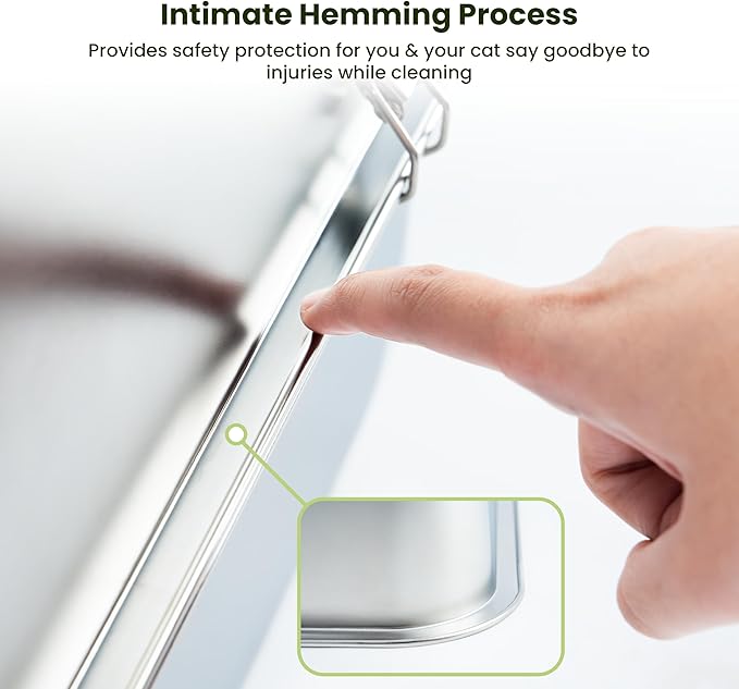 - Odor-Free Large Litter Box: The smooth surface of stainless steel doesn't absorb odors, maintaining a fresh environment even after prolonged use. Additionally, Cattasaurus stainless steel sifting litter box is easy to clean, simplifying maintenance.