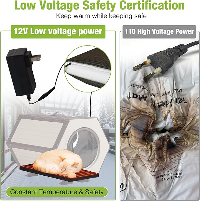- Safety Heated Cat Pad: Certified for 12V low voltage safety, the cat house maintains the right temperature while ensuring that your pet is protected from overheating risks, giving you peace of mind