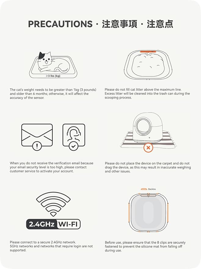 - ⭐Larger cats who may not want to use their smart litter box.so any questions, please contact us in time, we will reply to you 24 hours a day, 7 days a week. we'll provide you with advice and support.( Litter Box comes with our comprehensive Care 1-Year Warranty with an extended plan available for purchase.Our products may be returned with no cost but shipping.)