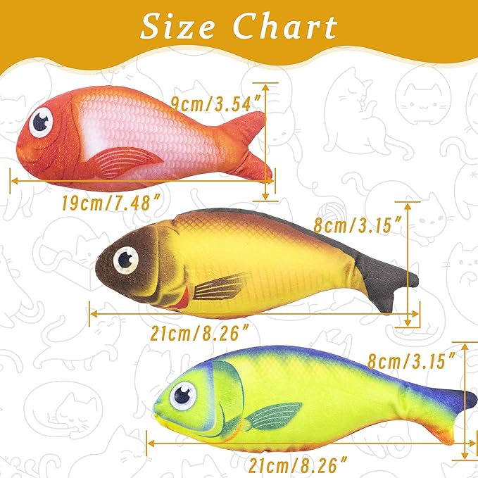 - Rich Colors: Our fish catnip toys come in three sets, with a variety of fish shapes to choose from. Each set fish has three different colors, and the colorful fish toys can stimulate cats' hunting instincts, keeping them energetic and happy