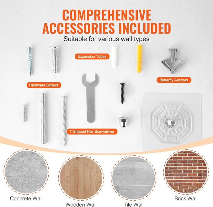 - Easy Installation: The package includes all necessary accessories and an installation guide. Simply follow the steps, insert the expansion tubes into the wall, and secure the boards using screws. The installation process is straightforward, allowing one person to easily set it up in no time.