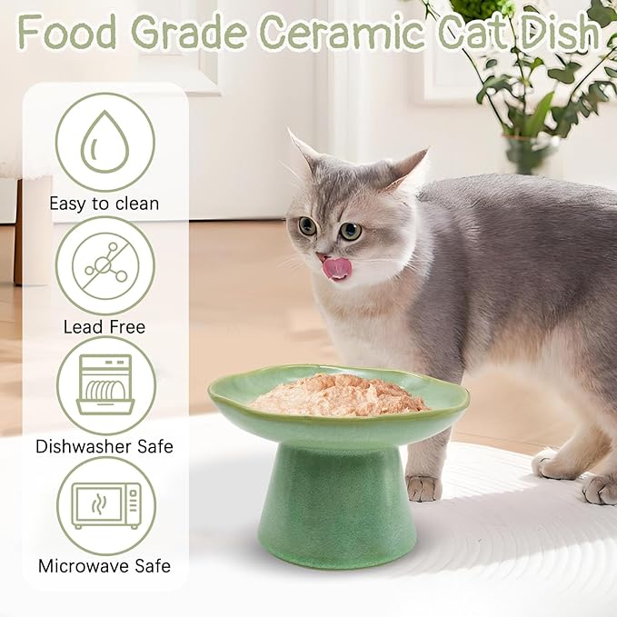 - Ceramic Elevated Shallow Cat Bowl: H 3.9 x W 6.1 inches the pet bowl is ergonomically designed to meet your pet's food and water needs at the same time, suitable for dry food, wet food and some other food, it's a good gift for your pet