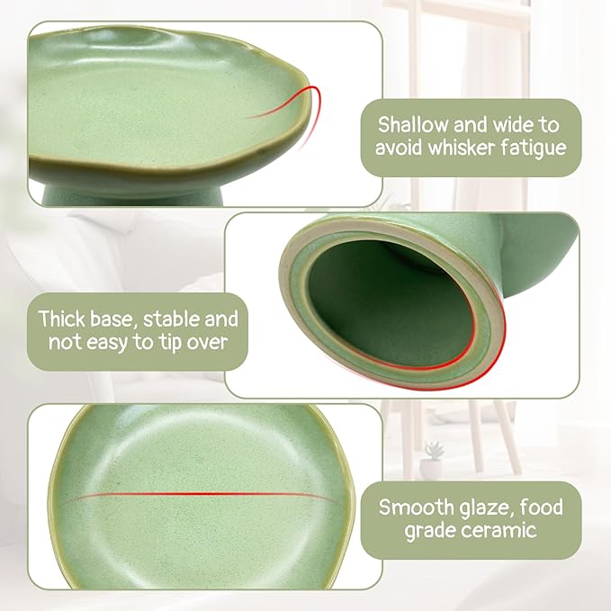 - Raised Food Bowl: VCEPJH 3.9-inch tall raised shallow cat food dish allows cats to eat more comfortably and effectively reduces cervical spine pressure, helps cats digest better and relieves vomiting, allowing cats to eat safely and securely