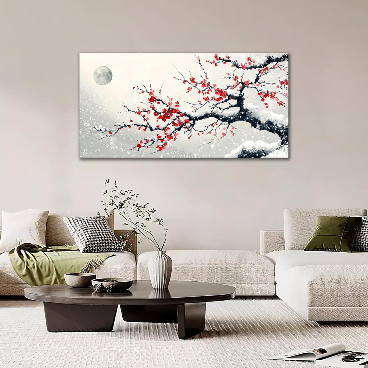 Large Flower Blossom Wall Art Snow Winter Canvas Living Room Chinese Floral Pictures Framed Prints Oversize Japanese Wall Decor Painting Artwork for Bedroom Dining 60"x30"