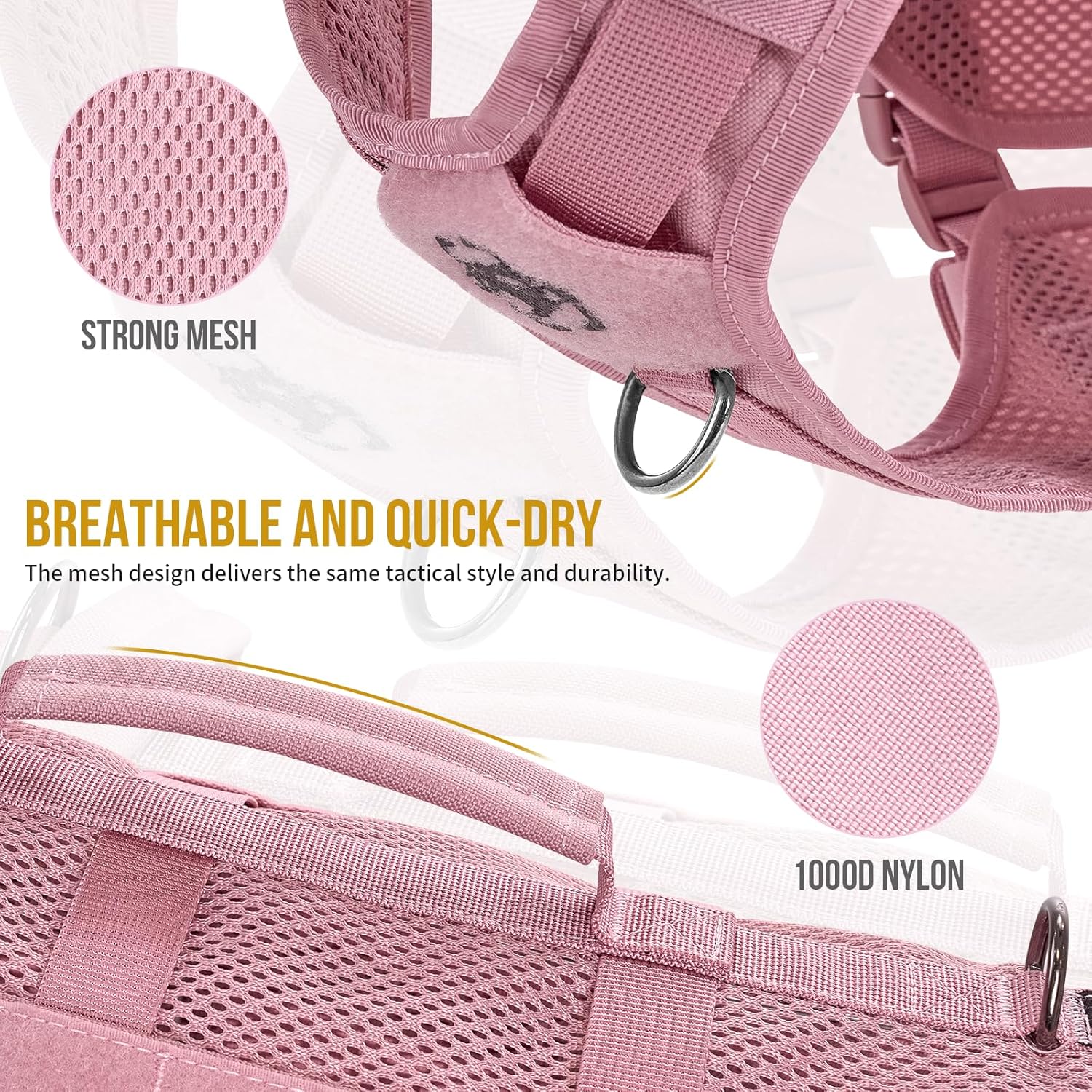 OneTigris Tactical Dog Harness for Small Dog, No Pull Small Dog Vest Harness with Handles Breathable Military Dogs Molle Vests for Walking Hiking Training (Pink, Medium)