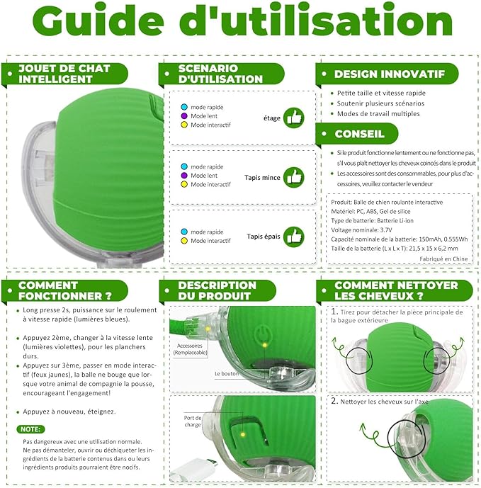 - 🐕【Strong Driver Smart Dog Cat Toy Ball】 --This cat toy can easily cross ceramic tile, wooden floors, low rugs, and even high-pile carpet, helping you entertain a high-energy cat or dog for hours! Note: Under the same working mode, balls rolling on the carpet will be slower than on a wooden floor.