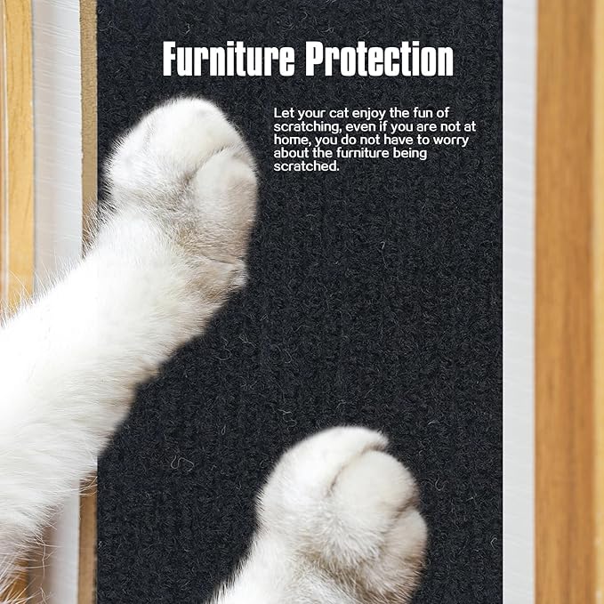 Cat Scratching Mat,Cat Scratch Furniture Protector, Trimmable Self-Adhesive Couch Protector,Carpet Replacement for Tree Shelves, Sofa and Scratching Post (40"x15.8",Black)