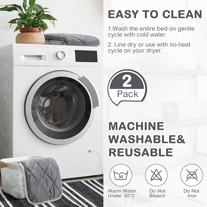 2 Pack Self Heating Cat Mat Self Warming Pet Pads Washable Kennel Mat Dog Crate Pad Reflects Body Heat Non Skid Cat Thermal Pads for Puppy Indoor Outdoor(Gray,19 x 28 Inches)