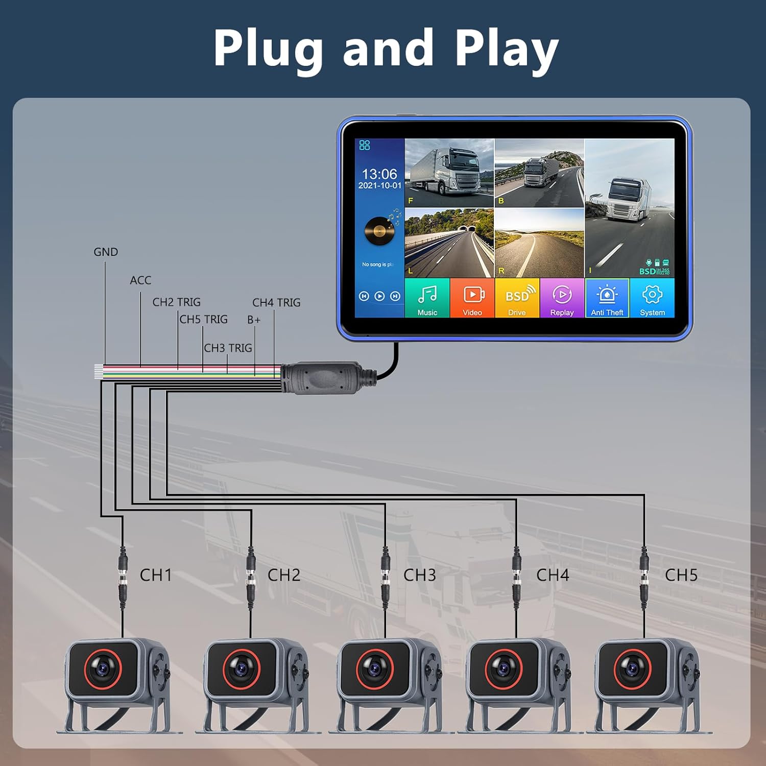 - HD and Smooth, Big Screen Experience: This reversing system adopts stable wired transmission technology to ensure the image transmission without delay and frame loss, with 10.1-inch IPS large screen, wide viewing angle and vivid colors, bringing immersive visual experience. The reversing line switch function can assist drivers to accurately judge the vehicle position when reversing and improve safety. Supports U disk input and USB charging function