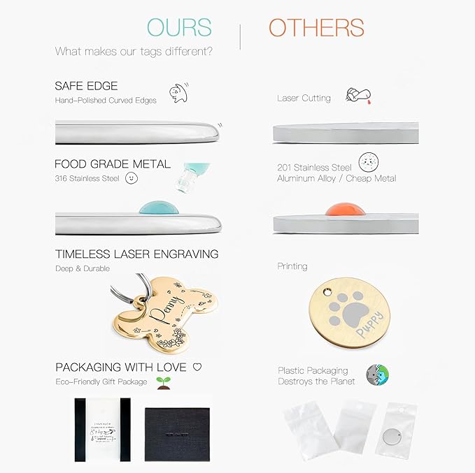 - Our pet tags are both beautiful and practical. They can not only help pets prevent getting lost, but also have multiple uses.