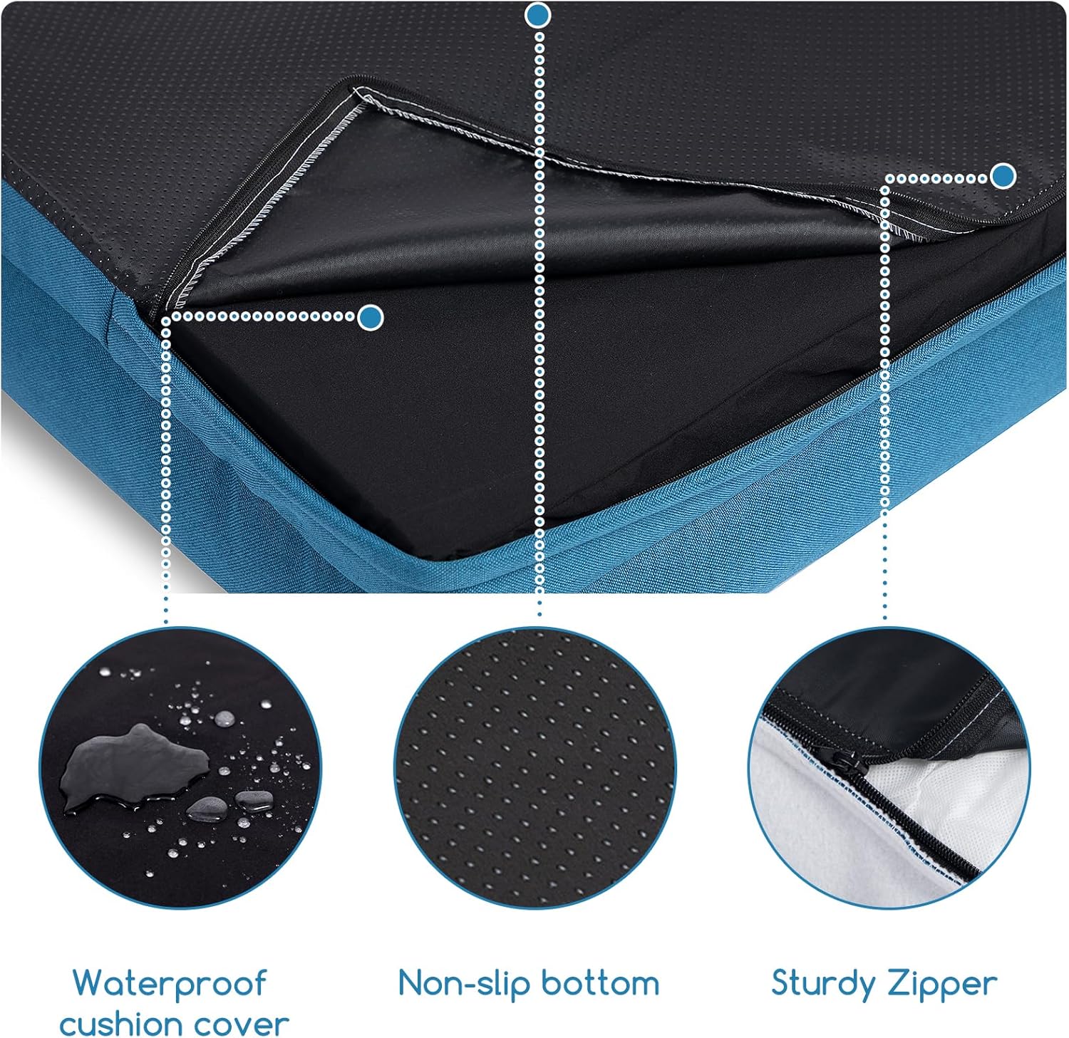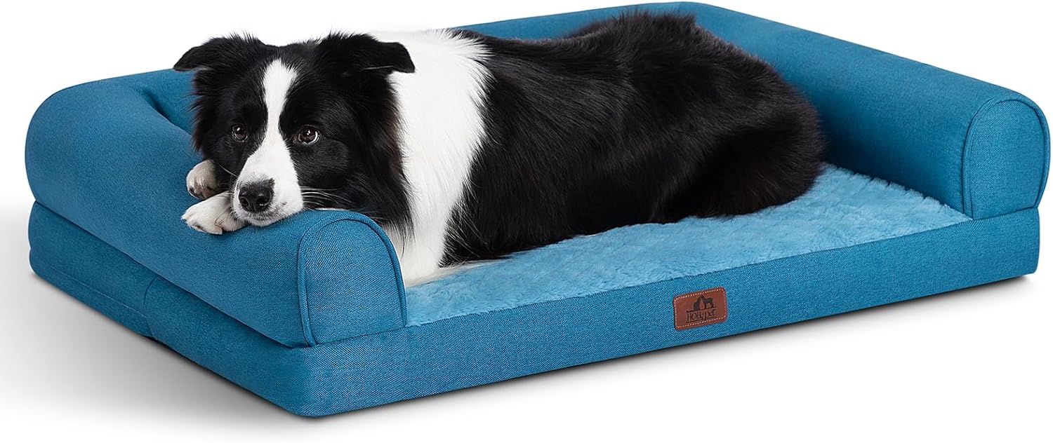 Hollypet Orthopedic Dog Bed for Large Dogs, Supportive Foam Pet Couch with Removable Washable Cover and Non-Slip Bottom, Waterproof Lining Dog Sofa Bed, Blue, L (36 * 26 * 8)