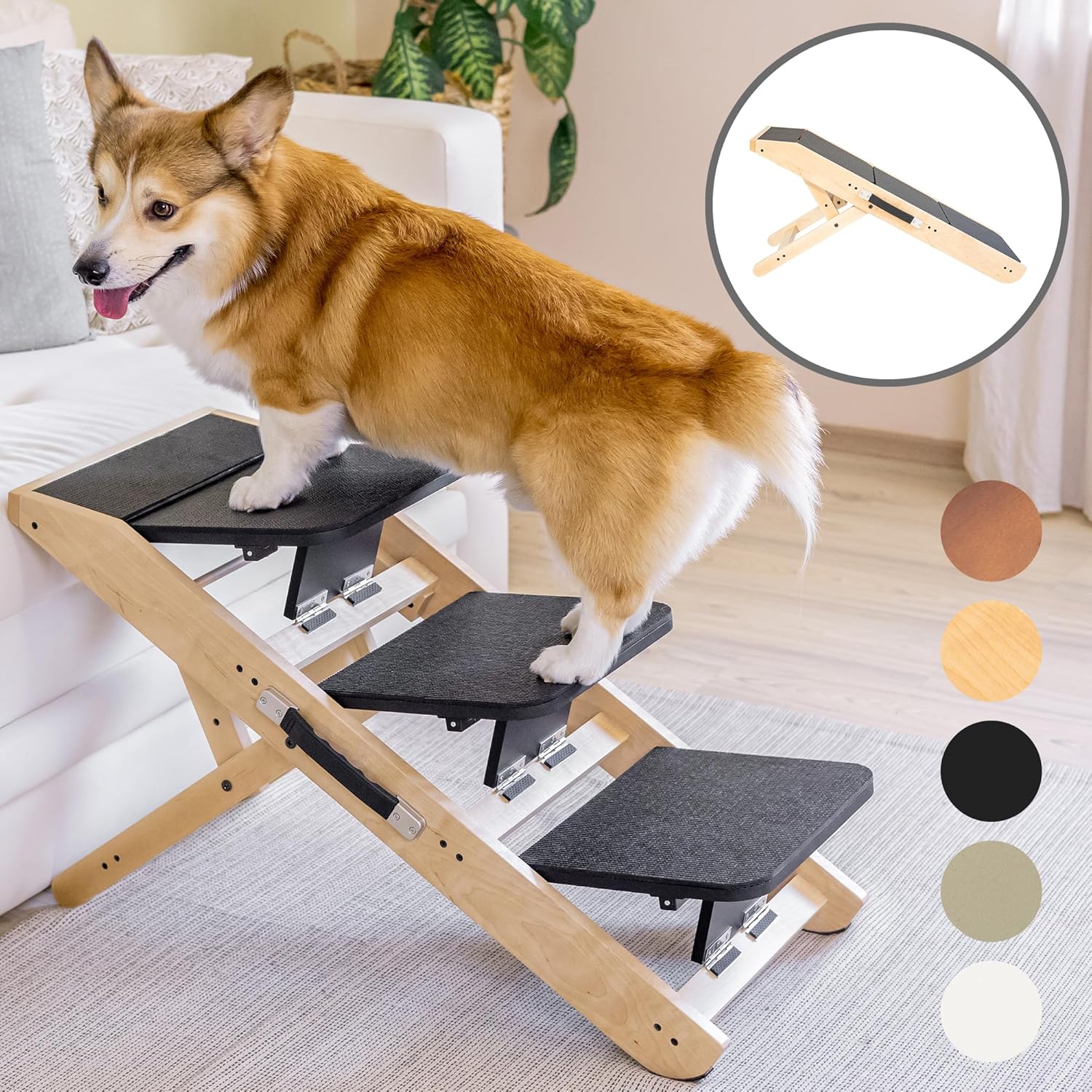 - SOLID BIRCHWOOD CONSTRUCTION WITH NATURAL FINISH: Crafted from premium solid birchwood, these pet steps are not only sturdy but also stylish, blending seamlessly into your home decor while providing reliable support for both small and large dogs.
