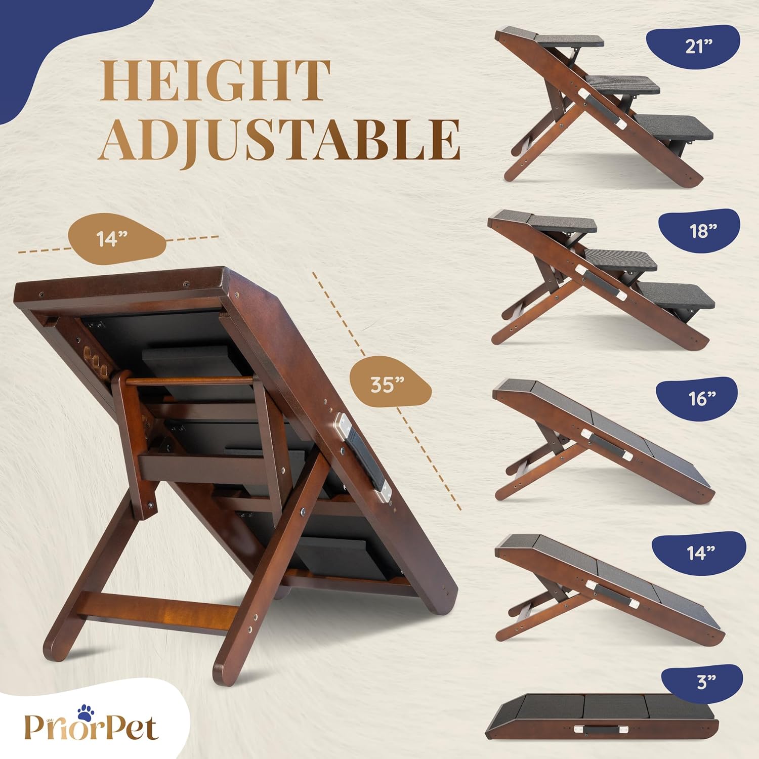 Dog Steps for Bed & Couch 2-in-1 Dog Stairs/Ramp - Height Adjustable Dog Ramp for Couch 7” - 20” - Pet Stairs, Dog Stairs for Small Dogs - Easy to Move Pet Steps with Landing Platform, Walnut