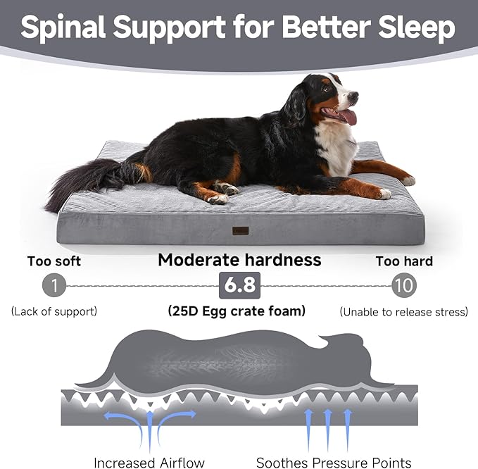 OhGeni Orthopedic Waterproof & Machine Washable Dog Bed for Extra Large Pets, Wider & Larger Size, Cat Mat with 25D Egg Crate Foam, Removable Cover & Invisible Zipper, 54 Inches(Gray)