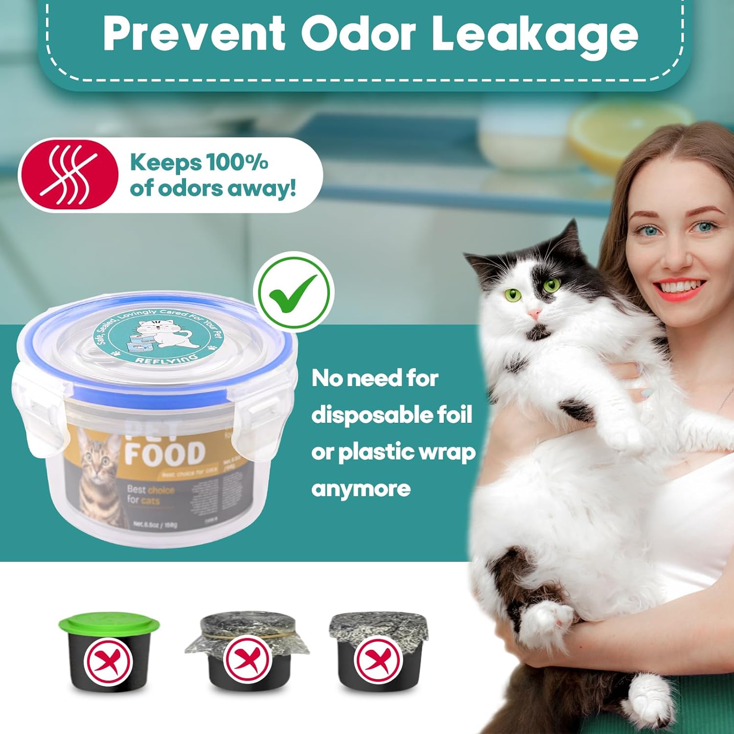 - SAY GOODBYE TO USING PLASTIC WRAP: No more plastic lids, aluminum foil and plastic wrap for canning lids. These clear canned cat food containers allow direct access to the food, isolate odors, are easy to use, and keeps the freshness of your pet's canned food