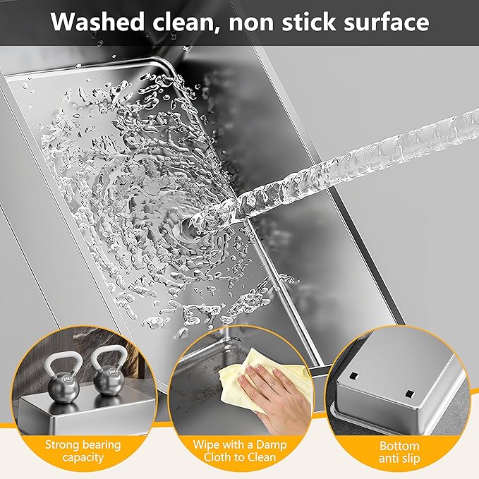 - 【Stainless Steel Cat Litter Box】: Stainless steel raw material prevent scratching by cat paws,non-porous nature feature is different from plastic, the stainless steel litter box will not collect any residue or odor, durable & rust resistant, extend the service life ,reduce the frequency of replacement.