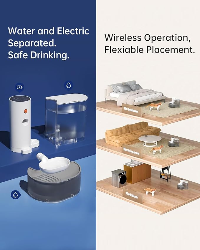 Smart Pet Water Fountain,Filterless Cat Water Fountain No Filter,3L/102oz Ultra Silent Cat Fountain, Separation Design(with A Quick Dry Pet Mat)