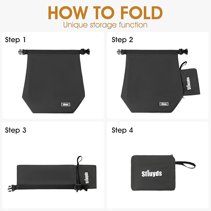 - SECURE ROLL-TOP CLOSURE - The innovative roll-top design allows you to securely close the bag by rolling it down and buckling it in place, providing a tight seal that keeps the contents protected. The strong buckle and attached D-ring offer added convenience, allowing you to clip on accessories such as leashes, keys, or tags, ensuring everything you need is within easy reach